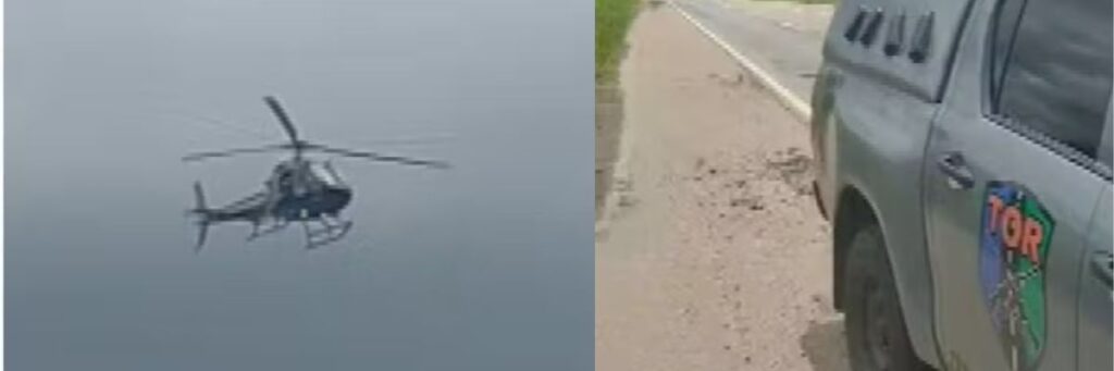 Em vídeos divulgados nas redes sociais, é possível ver um helicóptero da polícia sobrevoando a região à procura do suspeito.