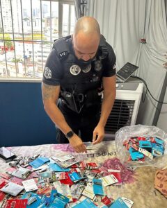 Durante o cumprimento da ordem judicial, os policiais encontraram três aparelhos celulares pertencentes ao investigado, além de diversos arquivos contendo cenas pornográficas envolvendo crianças e adolescentes, armazenados na memória de aplicativos instalados nos dispositivos.