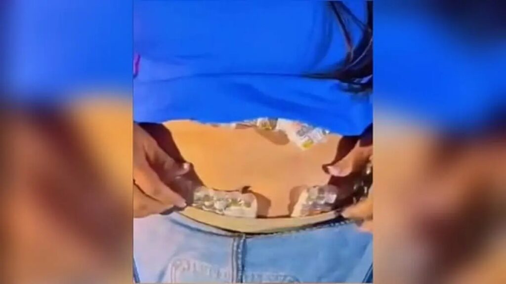 Durante a abordagem, os policiais encontraram diversas ampolas de medicamentos escondidas junto ao corpo de uma das passageiras, sob as roupas.